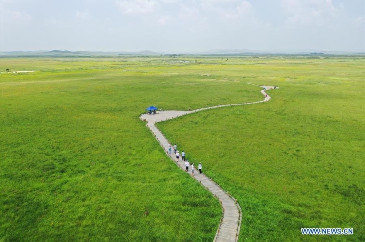 Des gens visitent le paturage de Jinlianchuan de la bannière de Zhenglan de la ligue de Xilingol, dans la région autonome de Mongolie intérieur (nord de la Chine), le 22 juillet 2020.