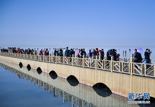 Le lac salé Chaka, situé dans la préfecture autonome mongole et tibétaine de Haixi, dans la province du Qinghai (ouest), est un lac naturellement cristallisé. Ces derniers jours, les nuages blancs, le ciel bleu, les monts au loin et le lac salé offrent à la vue des paysages magnifiques, attirant de nombreux visiteurs. (Photos : Zhang Long/Xinhua)