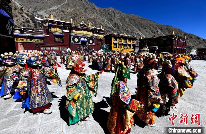 Le 19 février, 29e jour du 12e mois du calendrier tibétain, le monastère de Tsurpu à Lhassa, au Tibet, a organisé des danses ? Qam ? (danse religieuse tibétaine) pour chasser les mauvais esprits, prier pour la bonne fortune et éviter les désastres, tout en exprimant des v?ux pour le Nouvel An tibétain. Il s'agit d'une danse religieuse exécutée par des moines bouddhistes tibétains, qui se présente sous trois formes : en solo, en duo et en groupe. Pendant la danse, les moines portent divers masques de fant?mes ou d'animaux, ainsi que de longues robes. Le monastère de Tsurpu est le principal monastère de l'école Karma Kagyu du bouddhisme tibétain au Tibet. Il est situé dans la vallée de Tsurpu, dans le district de Doilungdêqên, à Lhassa, et a été fondé en 1189 à l'initiative de Dusum Khyenpa, le fondateur de l'école Karma Kagyu du bouddhisme tibétain.