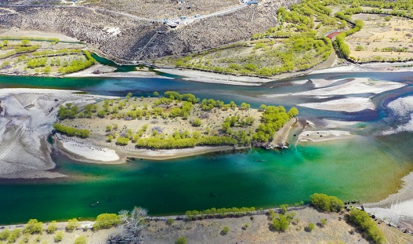Photo aérienne du paysage printanier du parc national de la zone humide de Yani, à Nyingchi, dans la région autonome du Tibet (sud-ouest de la Chine), le 7 avril 2023. (Photo : Nie Yi)