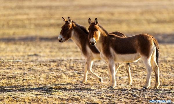 Des anes sauvages du Tibet observés dans la Réserve naturelle nationale de Qiangtang, dans la région autonome du Tibet (sud-ouest de la Chine), le 15 avril 2023. (Xinhua/Jiang Fan)