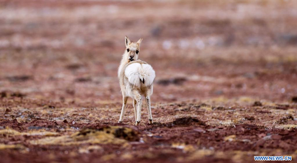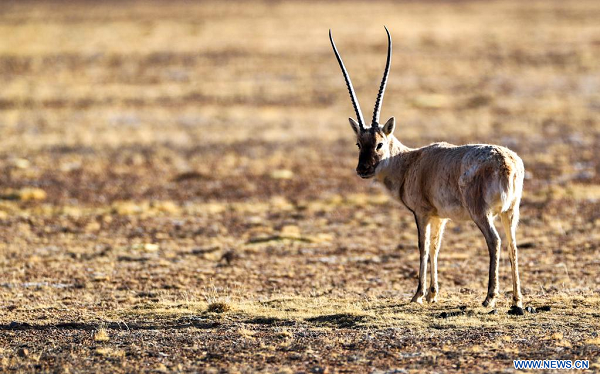 Une antilope tibétaine observée dans la Réserve naturelle nationale de Qiangtang, dans la région autonome du Tibet (sud-ouest de la Chine), le 15 avril 2023. (Xinhua/Jiang Fan)