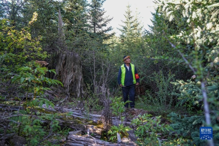 Des touristes prennent des photos au village de Jieba, près de la ville de Lingzhi, dans la région autonome du Xizang (ouest), le 20 juillet 2023. (Sun Fei / Xinhua)