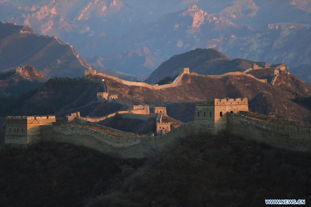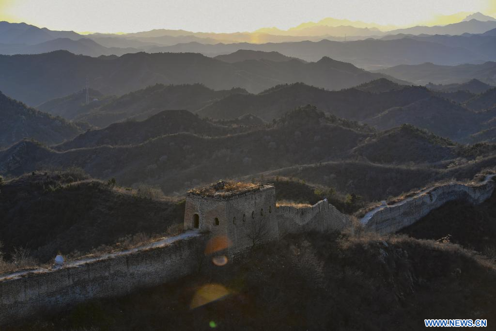 Photo aérienne prise le 14 novembre 2023 montrant le paysage de la section de Gubeikou de la Grande Muraille à Beijing, capitale de la Chine. (Xinhua/Chen Zhonghao)