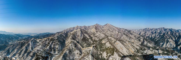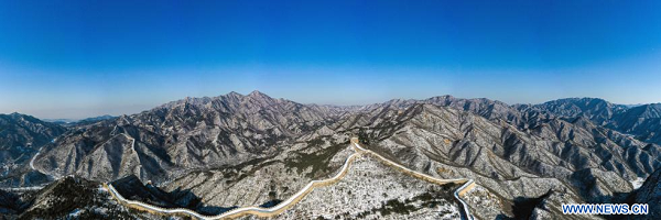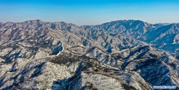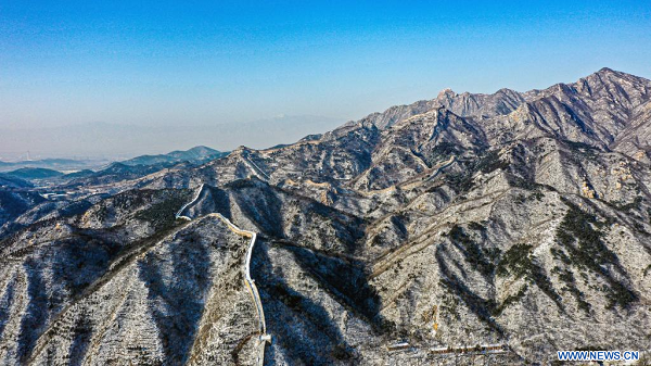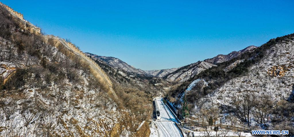 Paysage enneigé de la section de Badaling de la Grande Muraille, à Beijing, capitale chinoise, le 18 décembre 2023. (Xinhua/Liu Yu)