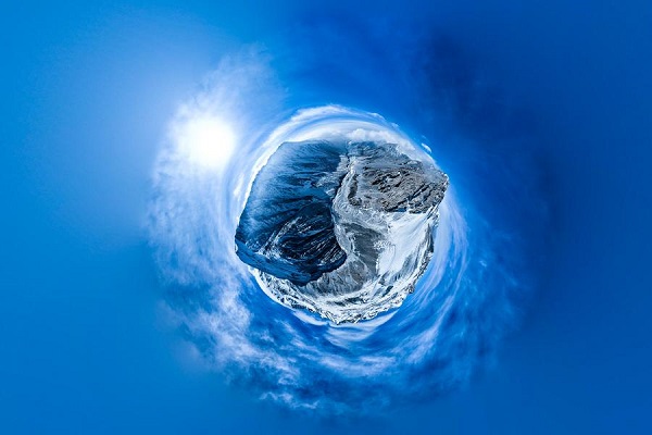 Photo panoramique aérienne prise avec un drone montrant le mont Ganshika. (Photo : Zhang Long)