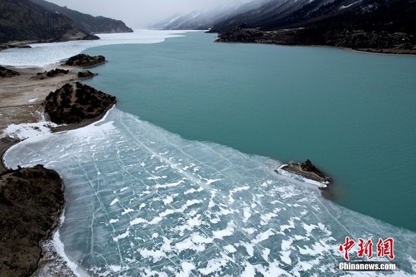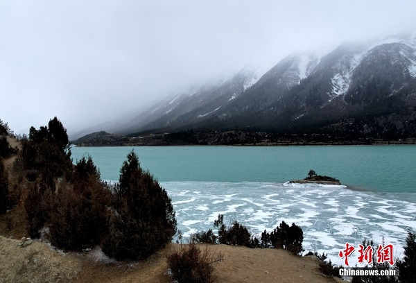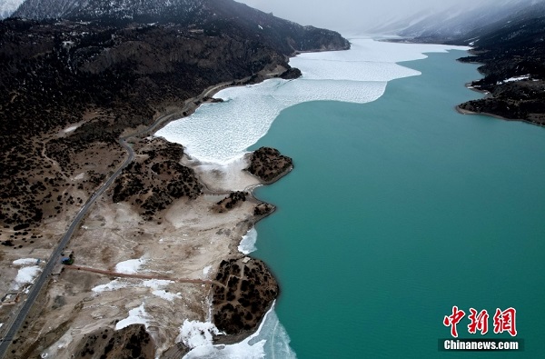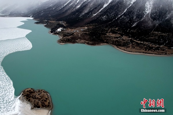 Le 21 février, dans le comté de Baxoi, ville de Chamdo, au Xizang, le lac Ra'og était partiellement gelé, offrant un paysage pittoresque et magnifique.