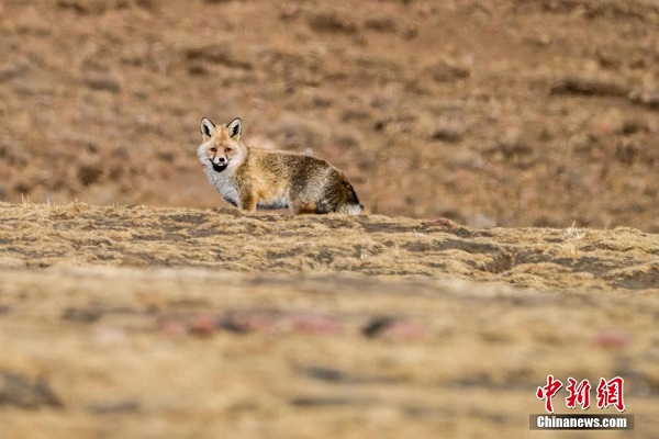 Rencontre avec un renard roux au bord du lac Yamzhog Yumtso.