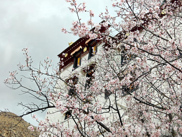 Chaque avril, dans l'ancien temple de Phabongkha, situé dans la banlieue nord du centre-ville de Lhassa, au Xizang, les pêchers entrent en floraison, attirant sur place de nombreux citoyens locaux et touristes qui viennent y profiter des fleurs et prendre des photos.