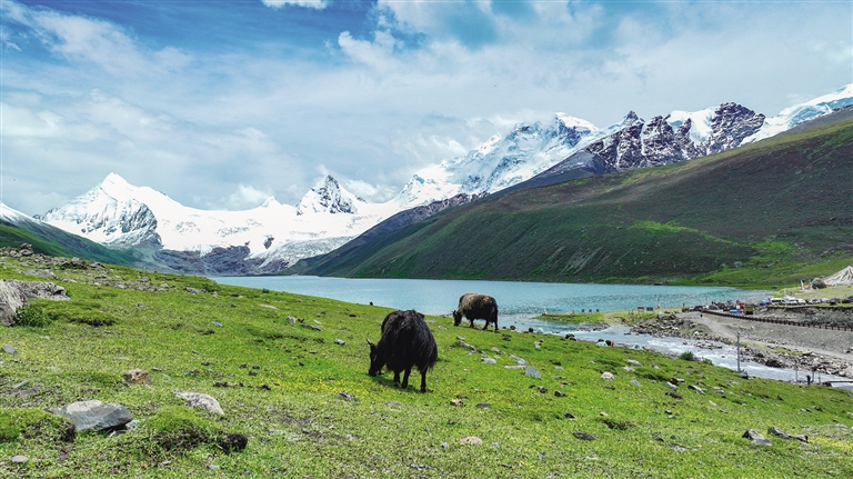 Le mont enneigé Sapu, situé au fond du gouffre de Puzongou dans le village de Yangxiu, district de Biru, ville de Nagqu, au Xizang, est une ?uvre magistrale de la nature. Au pied de cette montagne enneigée magnifique, les glaciers semblent être les empreintes du temps, coulant silencieusement ; les lacs, tels des miroirs, reflètent la pureté du ciel et la majesté des montagnes enneigées ; de vastes prairies verdoyantes abritent des troupeaux de bétail, où yaks et moutons coexistent harmonieusement. Les paysages ici ressemblent à un paradis sur terre, d'une beauté à couper le souffle, captivant de nombreux touristes et amateurs de photographie.