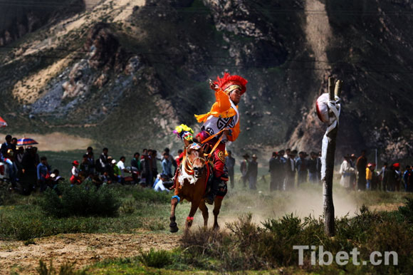Les courses de chevaux qui se tiennent au cours de la fête Ongkor est un programme important. D’après ce que l’on rapporte, cette fois là, 18 jeunes Tibétains vigoureux participent aux courses de chevaux, dont le joueur le plus jeune a seulement 16 ans.