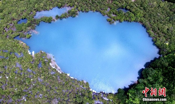 Sept jours après le tremblement de terre de 7.0 sur l’échelle de Richter du 8 ao?t à Jiuzhaigou au Sichuan, vue des airs, l’eau des lacs est toujours aussi bleue ; les paysages sont toujours aussi beaux.