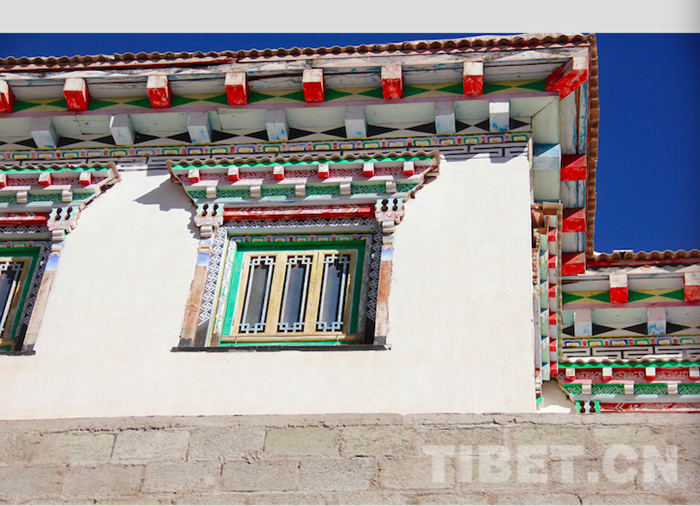 En vertu de la richesse forestière, les matériaux de construction ne se limitent pas au béton armé dans le sud-est du Tibet. En outre, la plupart des cadres de fenêtre sont peints et décorés de différentes couleurs.