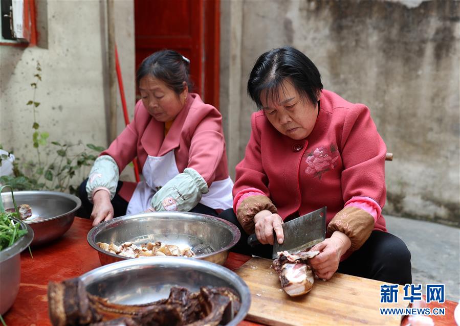 Le 17 mars, des villageois du xian autonome Dong de Yupin en train de préparer du shefan.
