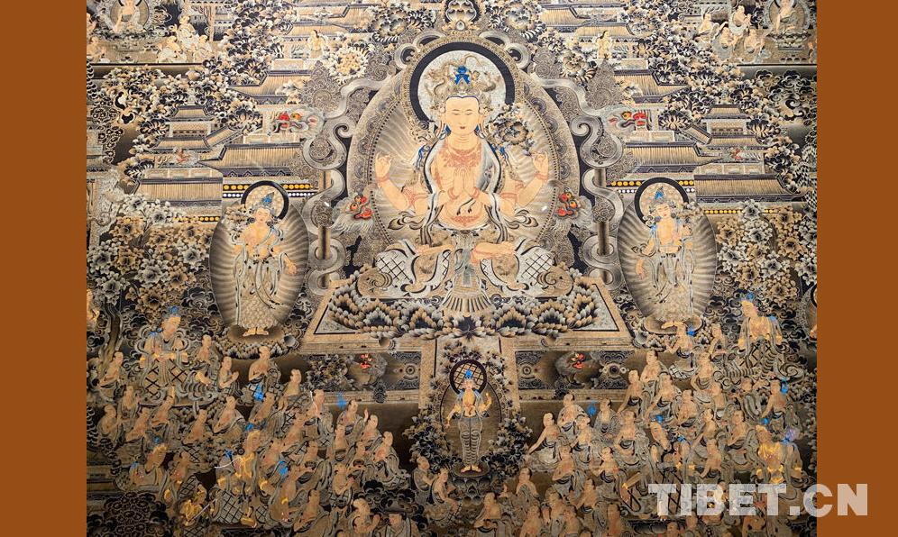 Une partie du thangka coloré ? Le thangka de mille mètres ?. De Niangben.