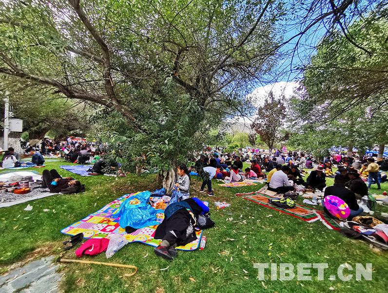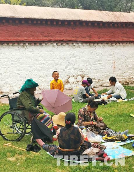à l'occasion du festival de Shoton de 2019, plusieurs artistes ont mené des recherches sur le terrain afin de trouver de l'inspiration. En entrant dans le parc Norbulingka, ils ont été enchantés par les scènes animées : sur la pelouse près de vieux arbres, les locaux célébraient le festival traditionnel annuel. Certains s'asseyaient sur la pelouse pour s'amuser. Quelle atmosphère festivale !