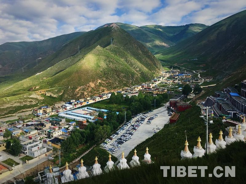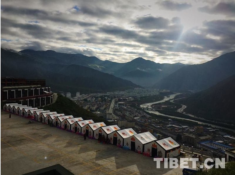 Le 14 avril 2010, un tremblement de terre de magnitude 7,1 s'est produit dans le canton de Gyêgu à Yushu. Aujourd'hui, la zone offre une vue magnifique et prometteuse : baignée par le soleil matinal, avec la rivière Zaqu sinueuse qui s'étend au loin, la ville de Gyêgu rena?t.