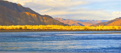 On y sent une tiédeur rafra?chissante. Le long de la rivière Lhassa, les montagnes flanquées des eaux s'étendent au loin : on dirait presque une peinture à l'encre !