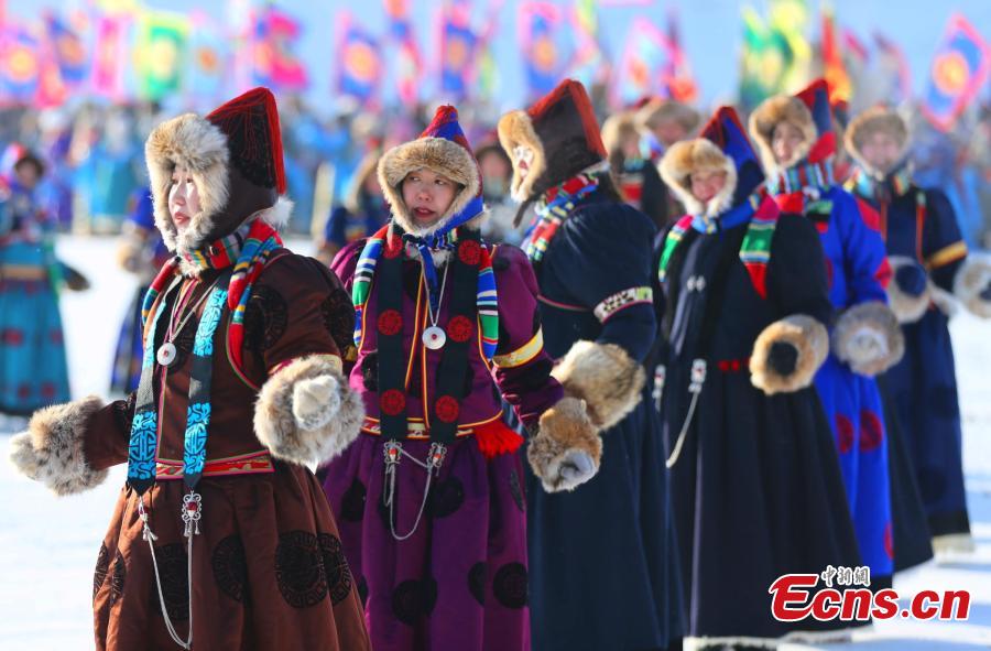Des femmes participent au Nadam d'hiver à Hulun Buir, dans la région autonome de Mongolie intérieure (nord de la Chine), le 23 décembre 2019. Le Nadam, qui signifie ? divertissement ? ou ? loisirs ? en langue mongole, est un festival mongol traditionnel de masse, principalement caractérisé par des événements sportifs. (Photo / China News Service)