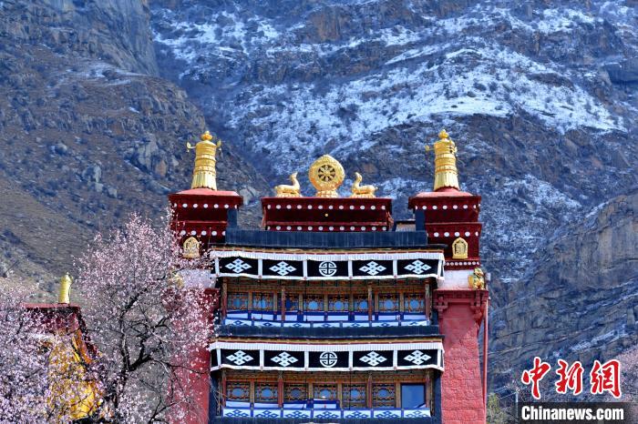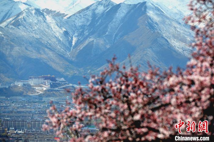 • Les fleurs de pêchers décorent l'ancien temple de Lhassa, au Tibet