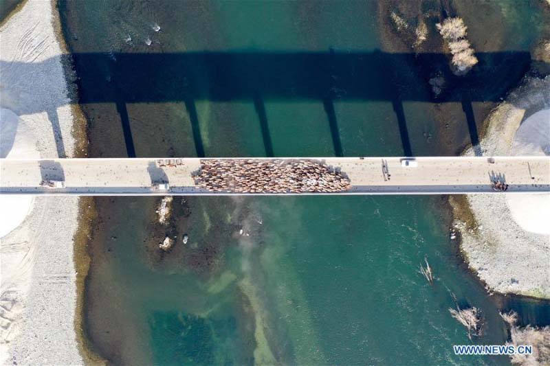 • Avec l'arrivée du printemps, les bergers du Xinjiang transfèrent le bétail dans les paturages de printemps