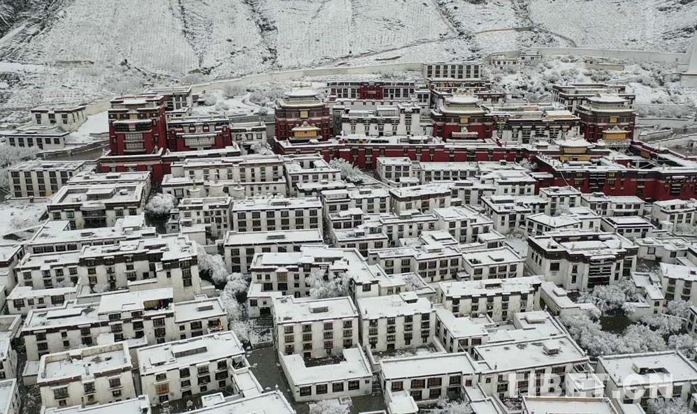 Le 24 avril, de fortes chutes de neige sont tombées à Shigatsé, dans la Région autonome du Tibet. Les montagnes environnantes ont été recouvertes de neige, et la ville semblait un peu plus calme.