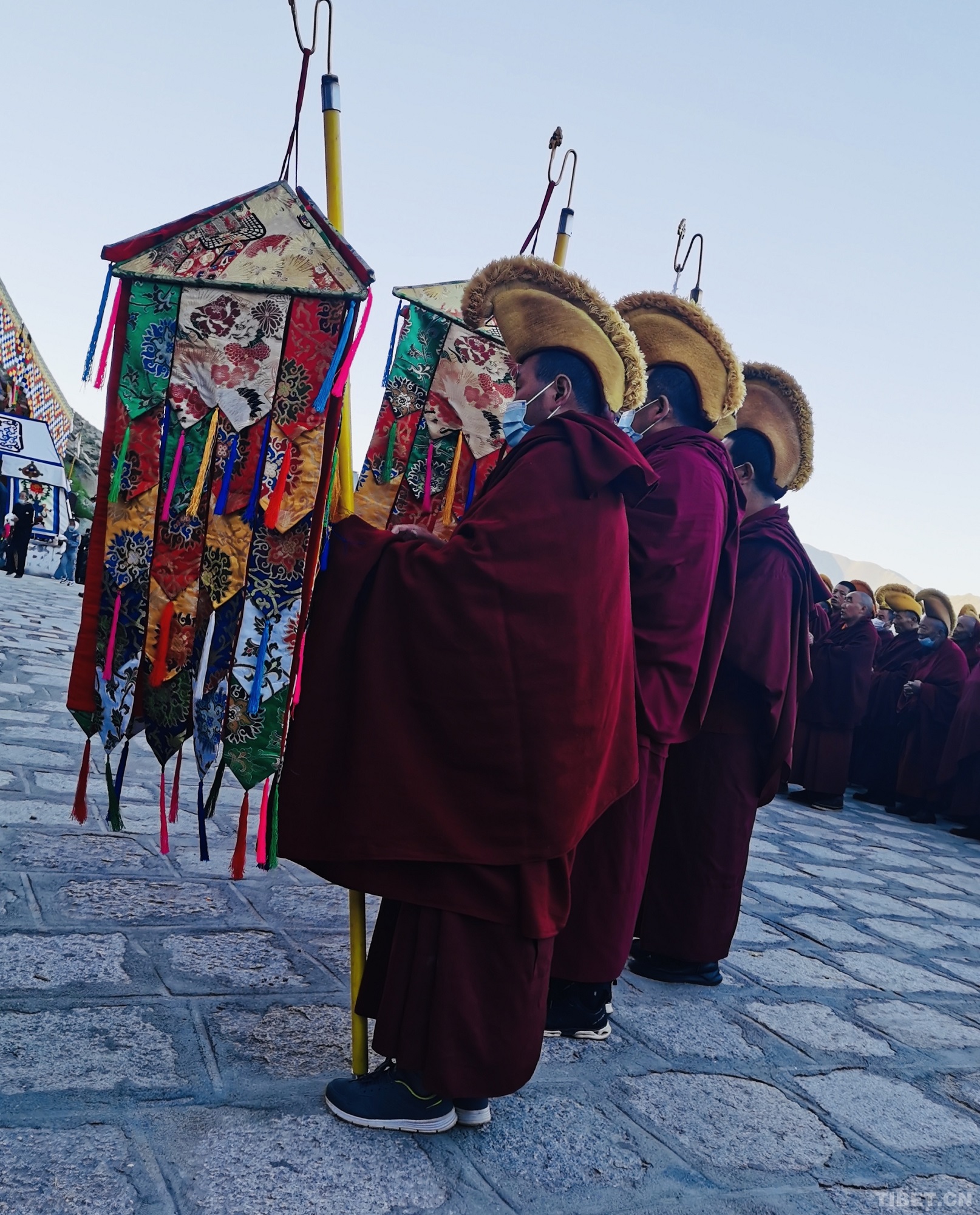 Cette année, l'exposition du grand thangka de Bouddha du monastère de Séra co?ncide avec celle du monastère de Drepung. Les deux expositions se sont chacune tenues de 7h à midi lors du premier jour du festival.