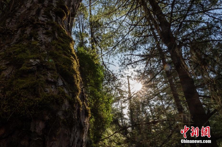 La forêt de Picea aspereta de Gang est située à 22 kilomètres à l'ouest de la ville de Zhamog, dans le comté de Bomê, à Nyingchi, au Tibet. Ici, le taux de couverture forestière est supérieur à 61%. Surplombant cette forêt, les montagnes enneigées au loin se dessinent parmi les nuages. Les montagnes, les arbres verts, les lacs et les rivières forment un magnifique tableau.