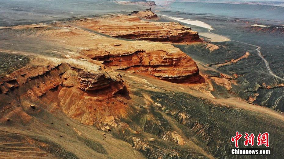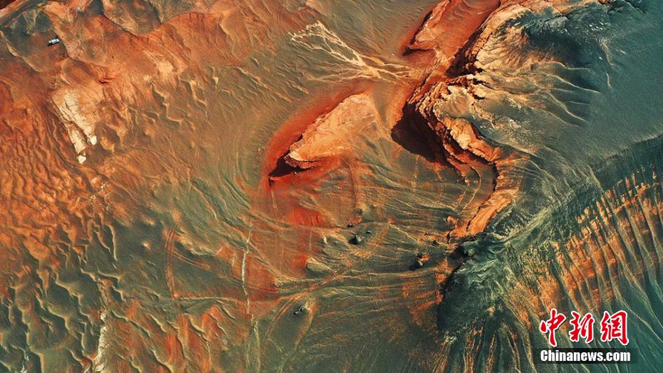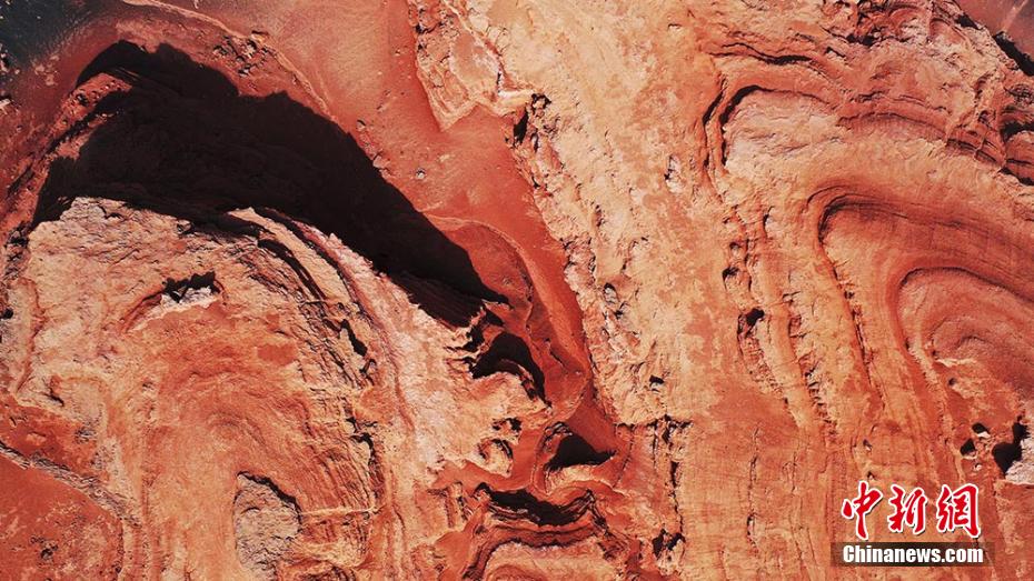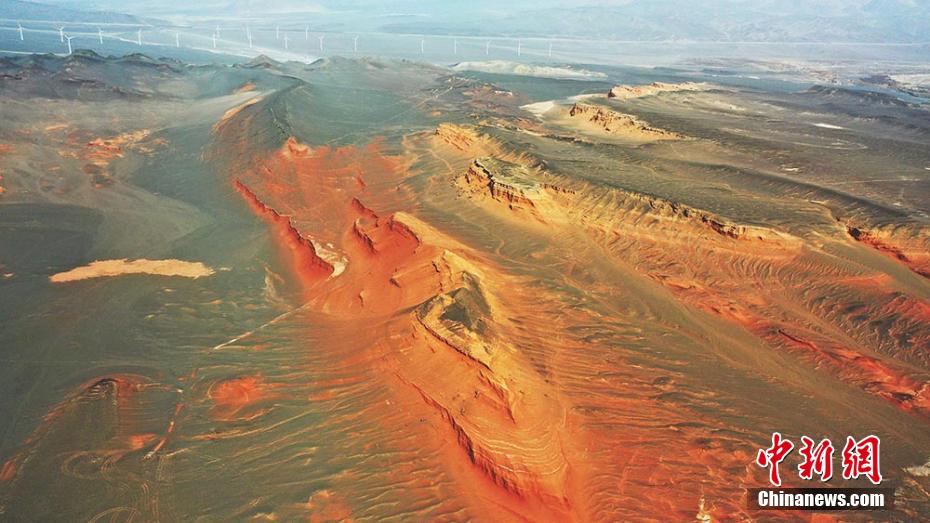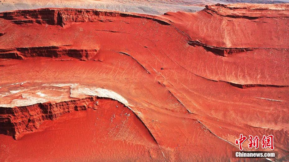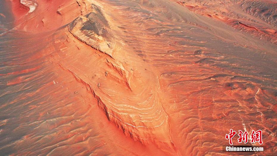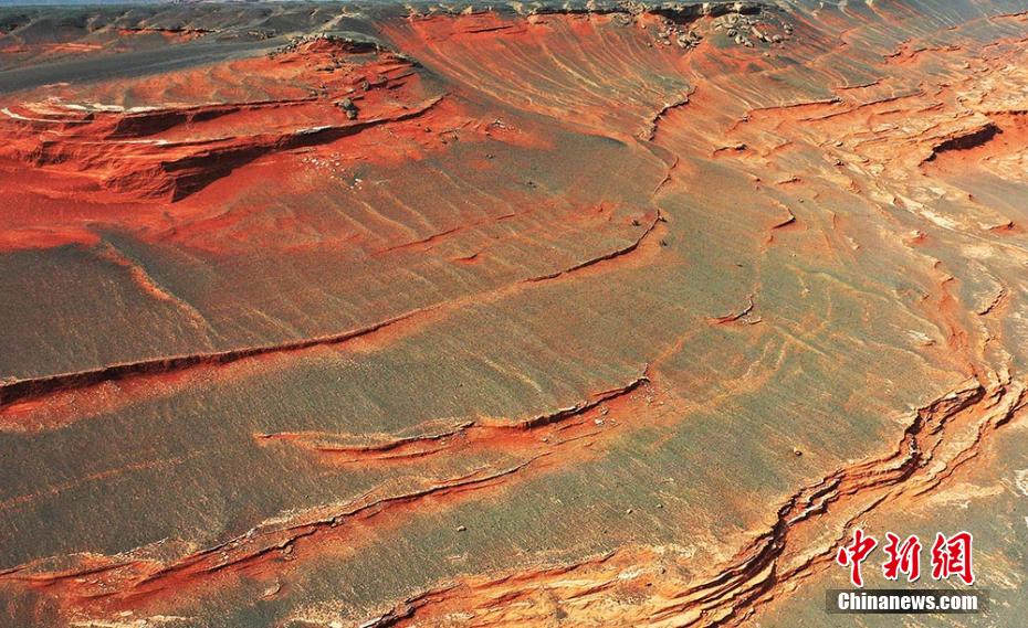 Photos prises le 23 mars dans la région autonome ou?ghoure du Xinjiang (nord-ouest de la Chine), montrant les reliefs rouges au pied du mont Tianshan.