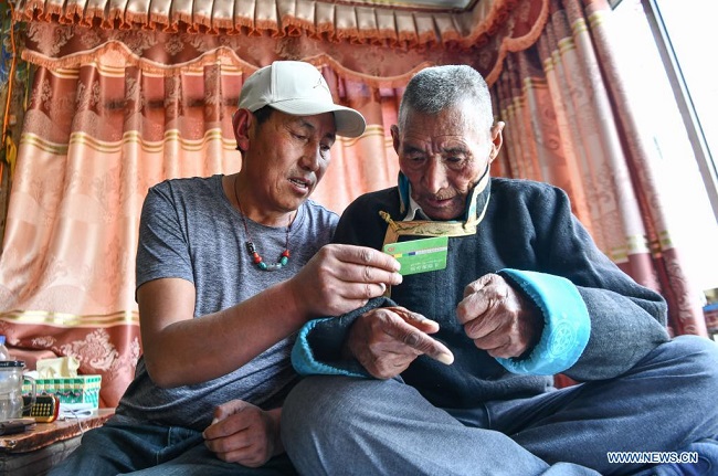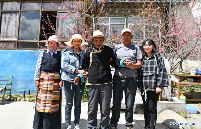 Né en 1938, Lhapu a travaillé comme serf avant la réforme démocratique au Tibet en 1959, qui a aboli le servage féodal en vigueur jusque là sous la théocratie. ? En tant que partie des outils de production, nous faisions juste ce que le seigneur nous demandait de faire, et il nous était même interdit de parler fort ?, a raconté Lhapu en évoquant sa vie dans les temps anciens, ajoutant que les enfants n'avaient ni nourriture ni vêtements garantis. Après la réforme démocratique, de grands changements ont eu lieu dans la vie de Lhapu. Il a re?u un terrain et a construit une nouvelle maison. Aujourd'hui, cet homme de 83 ans jouit d'une vie heureuse avec ses enfants et petits-enfants. (Jigme Dorje / Xinhua)