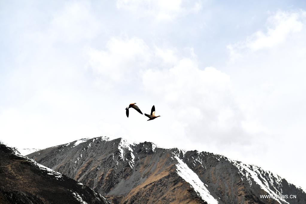Des touristes prennent des photos près du mont Sapukonglagabo, dans le comté de Biru à Nagqu, dans la région autonome du Tibet (sud-ouest de la Chine), le 4 mai 2021.