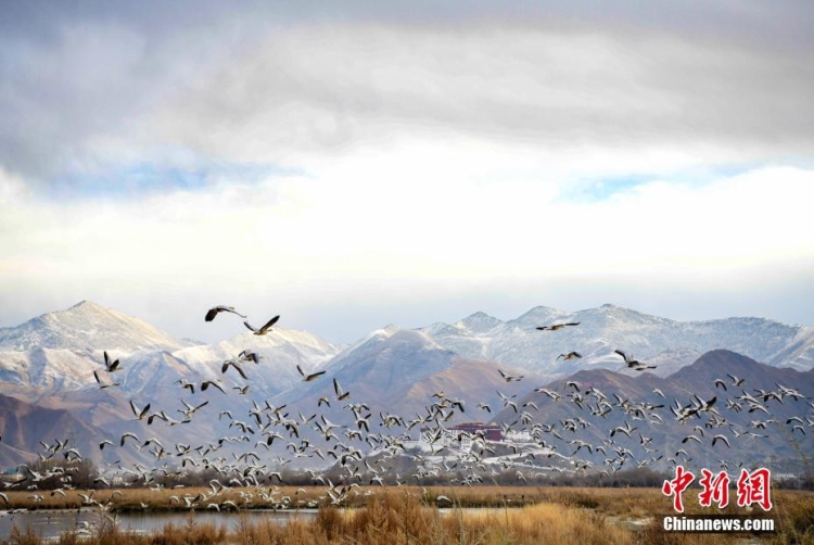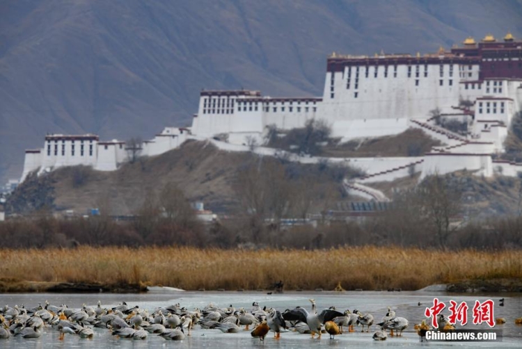 Le 24 décembre, dans les zones humides de Lhalu, des oiseaux migrateurs hivernants ont afflué en groupe. Pendant l'hiver rigoureux, la réserve naturelle nationale des zones humides de Lhalu à Lhassa, au Tibet, est devenue un paradis pour les oiseaux migrateurs qui y passent l'hiver.