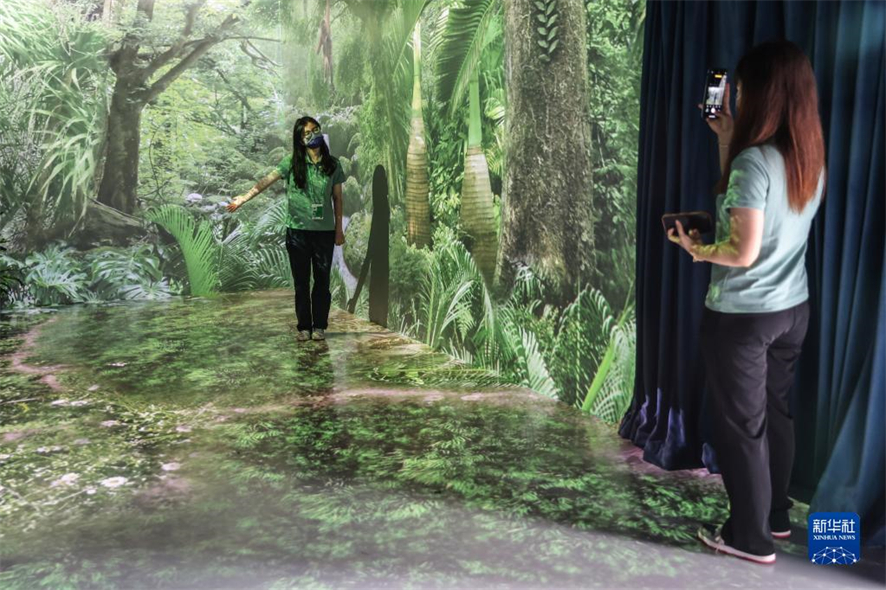 à travers 9 jardins et 21 salles, les visiteurs peuvent profiter d'une expérience immersive du parc national de la forêt tropicale humide de Hainan ainsi que découvrir la culture des ethnies Li et Miao. (Photos : Yang Guanyu/Xinhua)
