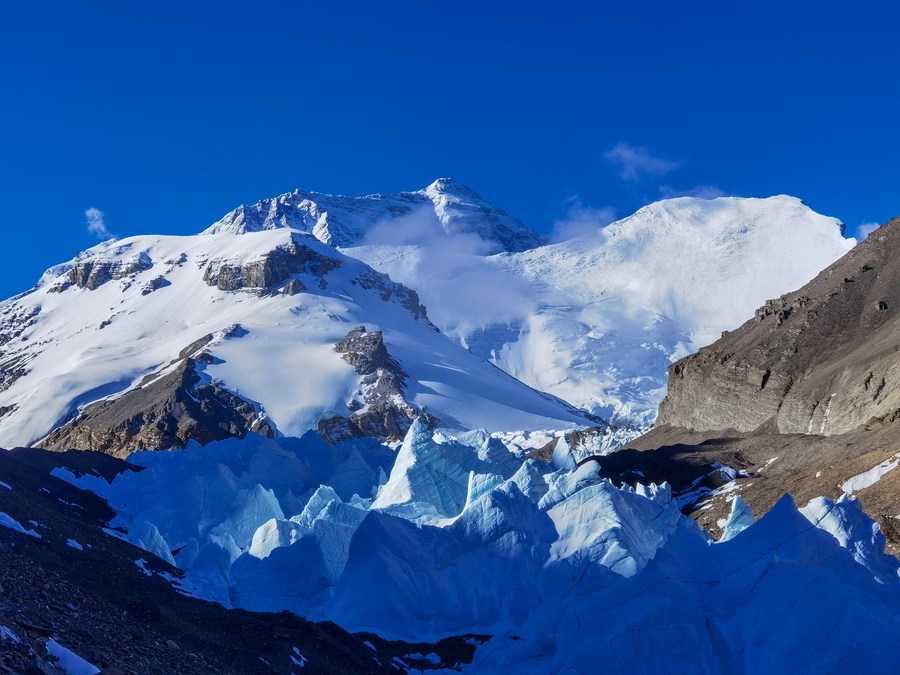 Photo prise le 6 mai 2022 du glacier du Rongbuk au pied du mont Qomolangma, dans la région autonome du Tibet, dans le sud-ouest de la Chine. (Photo : Kang Shichang)