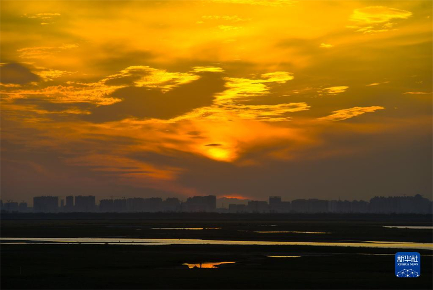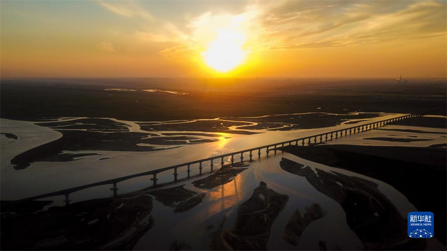 Photo aérienne prise le 16 ao?t, montrant une section du fleuve Jaune à Ordos, dans la région autonome de Mongolie intérieure (nord). Au début de l'autonome, les monts, les prairies et les zones humides des deux c?tés du fleuve Jaune en Mongolie intérieure offrent à la vue un paysage splendide. (Photos : Peng Yuan/Xinhua)
