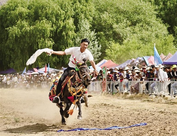Cette année, pour le festival Ongkor, il y a des spectacles équestres traditionnels, du tir à l'arc à cheval, de la cueillette de khata à cheval, des courses de chevaux de vitesse et des spectacles d'opéra tibétain. Le 26, les villageois ont revêtu leurs costumes de fête, ont préparé de bonne heure leur vin d'orge finement infusé, leur thé au beurre, leur thé sucré et d'autres boissons, ont chanté et dansé et ont bu joyeusement dans une ambiance conviviale.