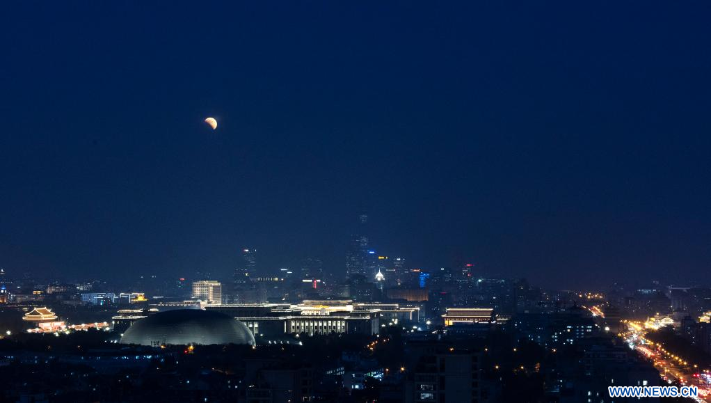 La Lune pendant une éclipse lunaire totale à Beijing, capitale chinoise, le 8 novembre 2022. (Photo : Fei Maohua)