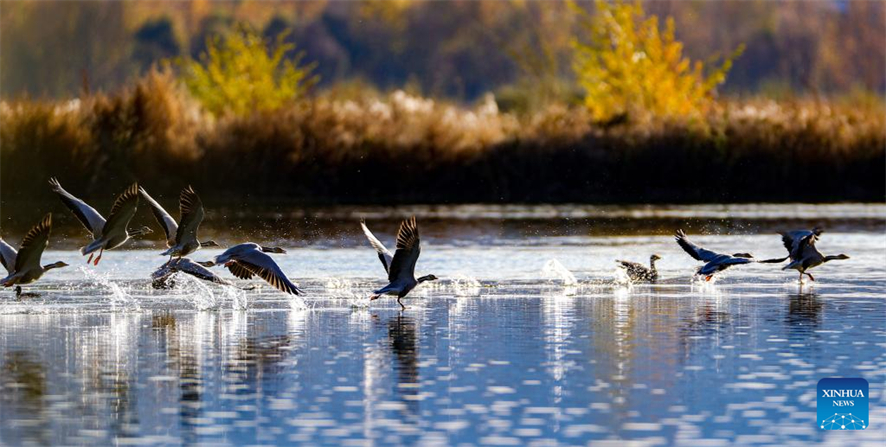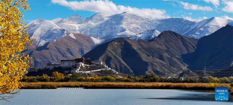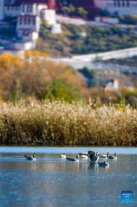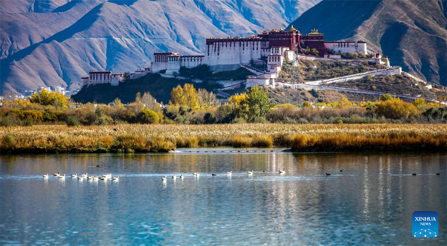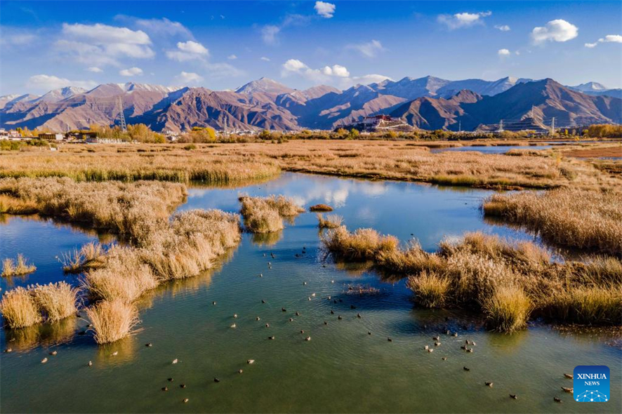 Photo prise avec un téléphone portable le 29 octobre 2022 montrant la zone humide de Lhalu à Lhassa, capitale de la région autonome du Tibet (sud-ouest de la Chine). (Shen Hong Bing / Xinhua)
