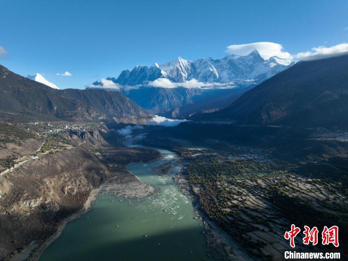 Le Grand Canyon de Yarlung Zangbo à Nyingchi, au Tibet, part du village de Daduka, district de Mainling au nord, et atteint le village de Baxika, district de Medog au sud. C'est le plus grand canyon du monde. Dans toute la région du canyon, les glaciers, les forêts vierges, les falaises, les pentes abruptes et le magnifique Yarlung Zangbo sont entrelacés. Récemment, pendant la transition de l'automne et de l'hiver, les glaciers, les feuilles jaunes et les champs en terrasses du Grand Canyon du Yarlung Zangbo forment une magnifique image de paysage de haut plateau.