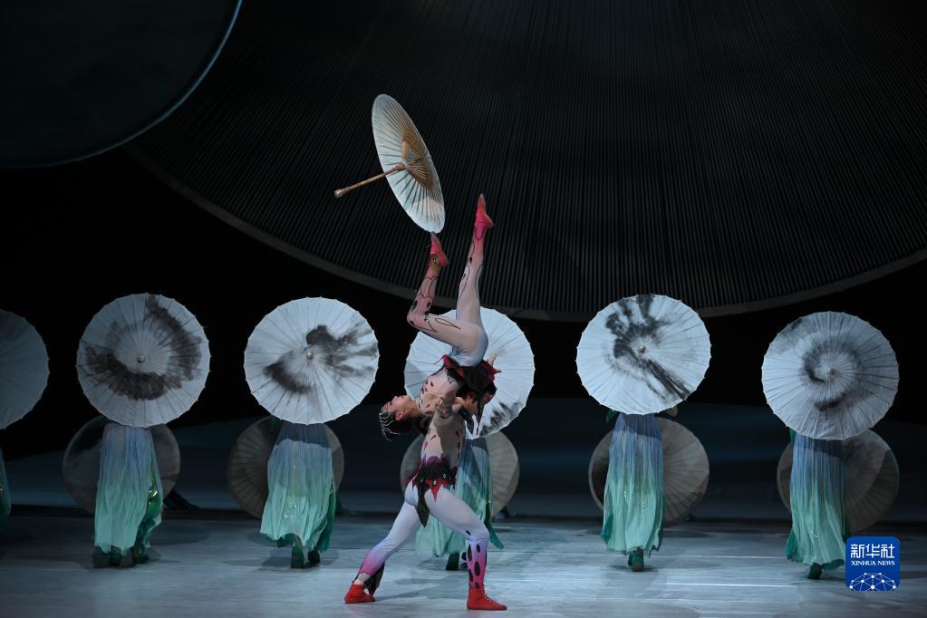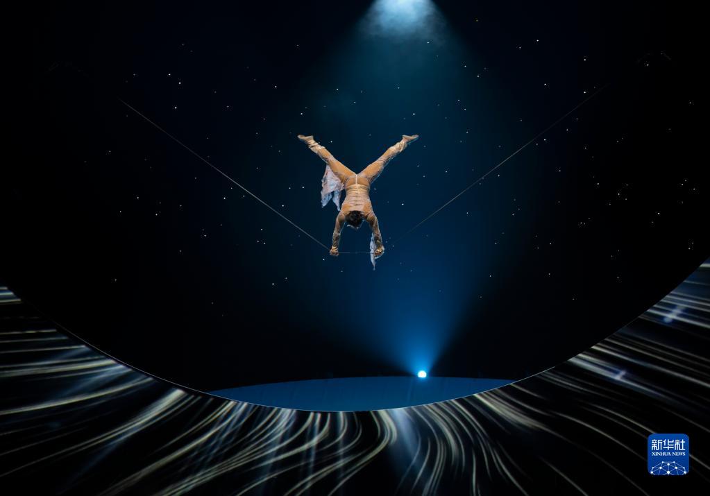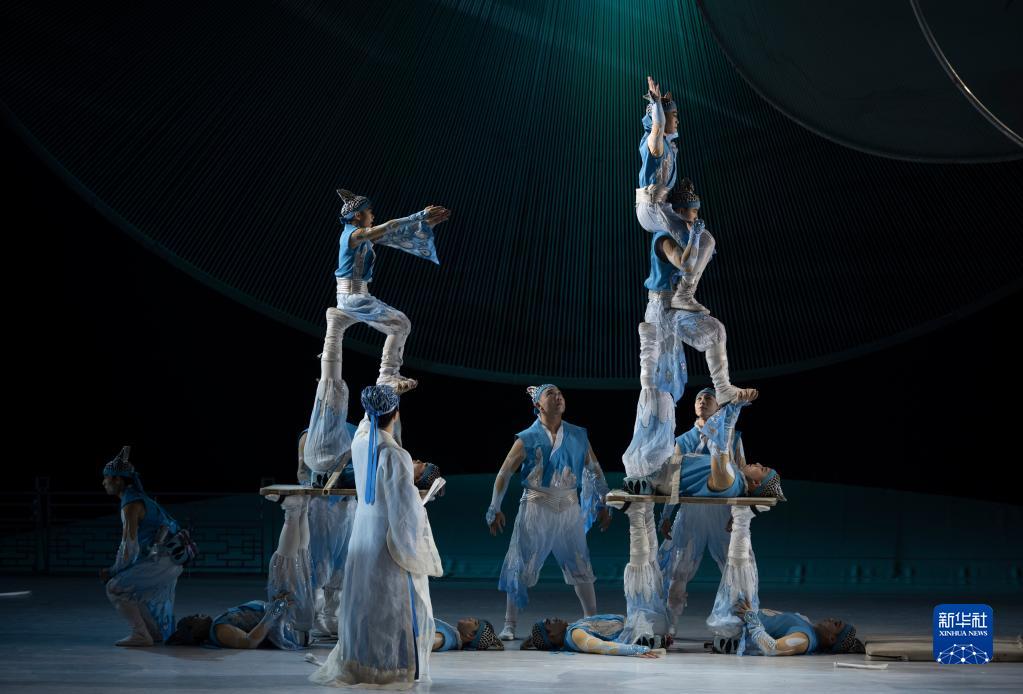 Photo prise le 8 novembre, montrant un spectacle d'acrobaties à la cérémonie d'ouverture de la 5e édition du festival d'acrobaties de Chine, qui se tiendra du 8 au 13 novembre à Puyang, dans la province du Henan (centre). Le concours d'acrobaties ? Chrysanthème doré ? sera également organisé dans le cadre du festival. (Photo : Xu Jiayi/Xinhua)