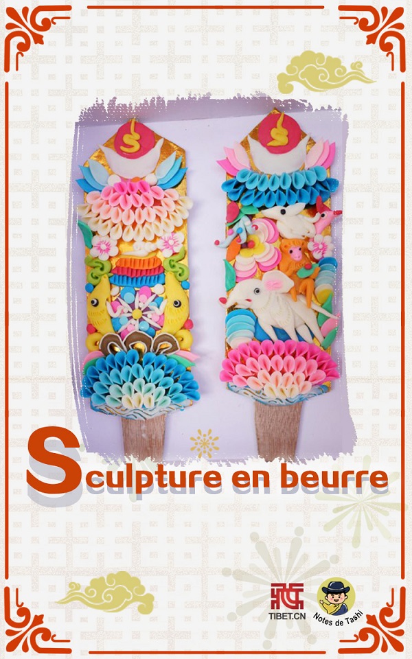 Des morceaux de beurre fleurissent entre les mains de la population tibétaine, offrant des bénédictions les plus colorées pour le Nouvel An tibétain (Losar). Les sculptures en beurre sont également l'une des décorations importantes sur les bo?tes Qiema.