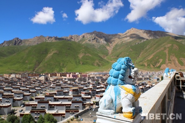 Le monastère de Tsande se trouve dans le bourg de Yagla, comté de Sog, ville de Nagqu, région autonome du Tibet, à une altitude de 4100 mètres. La photo présente une vue en contrebas du monastère de Tsande.