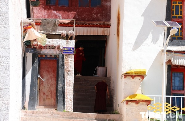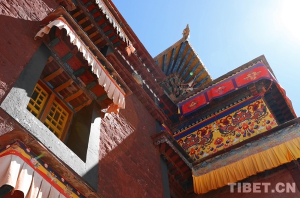 L'ensemble du complexe du monastère, construit sur une colline, comprend des palais blancs et un palais rouge. Le palais rouge, situé au centre, est principalement dédié à la vénération des divinités bouddhistes et aux affaires religieuses, tandis que les palais blancs qui l'entourent servent de résidence aux moines. En raison de sa ressemblance architecturale avec le palais du Potala, il est surnommé ? le petit palais du Potala ?. La photo montre le hall principal du monastère de Tsande.