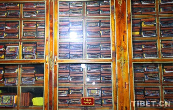 En photo : la collection de textes bouddhistes du temple.