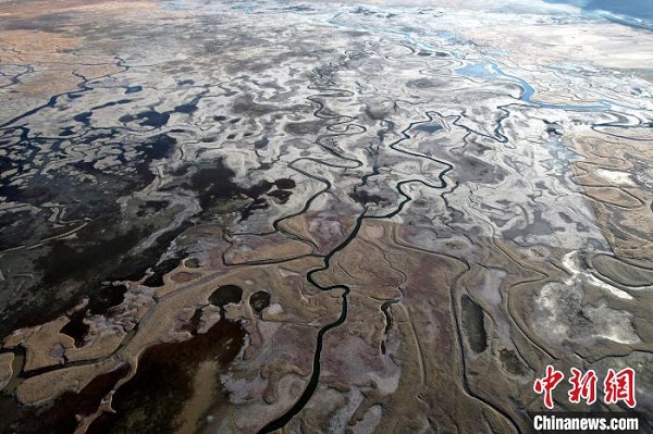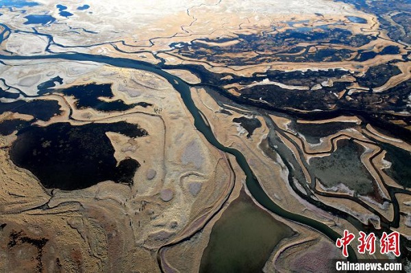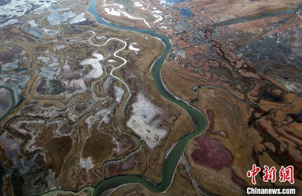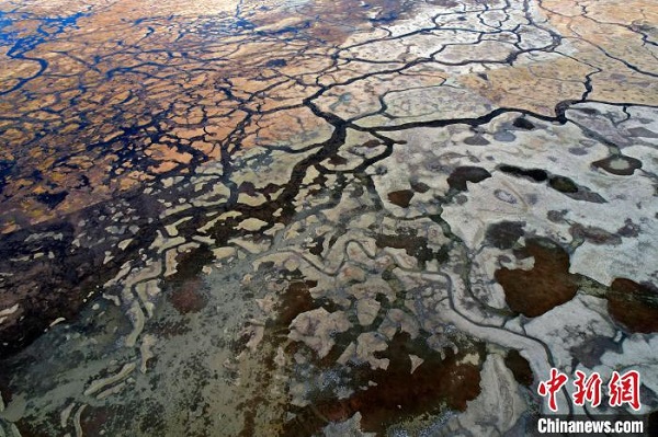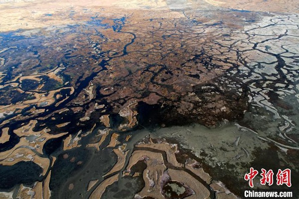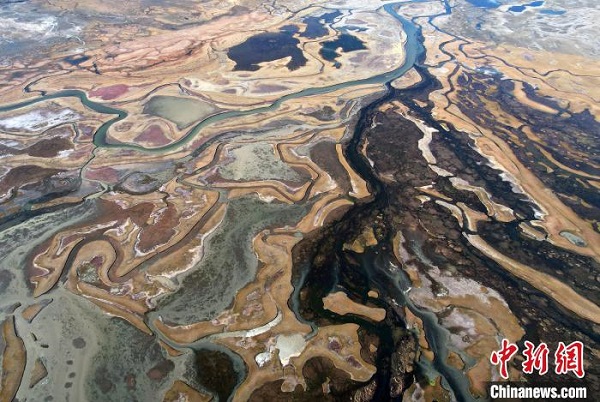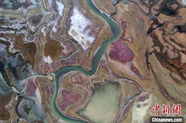 • Photographie aérienne de la zone humide colorée d'Are au Tibet