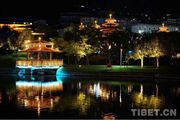 Le parc de la terre sacrée des Lotus est situé dans le district de Mêdog, ville de Nyingchi, région autonome du Tibet. Il s'agit d'un projet de construction clé du septième groupe de l'équipe d'aide de la province du Guangdong à Mêdog. La construction a commencé en novembre 2014 et s'est achevée en avril 2016. La superficie totale du parc couvre plus de 100 000 mètres carrés. La nuit, des bandes lumineuses colorées illuminent l'ensemble du parc, le rendant encore plus charmant. Il est désormais devenu un ? endroit célèbre sur Internet ? du district de Mêdog.