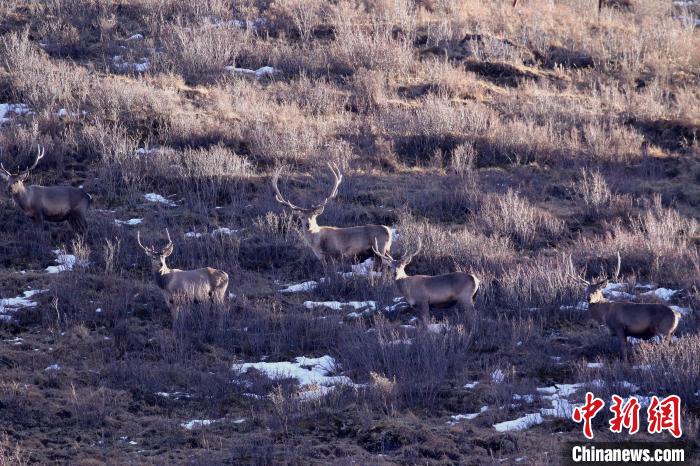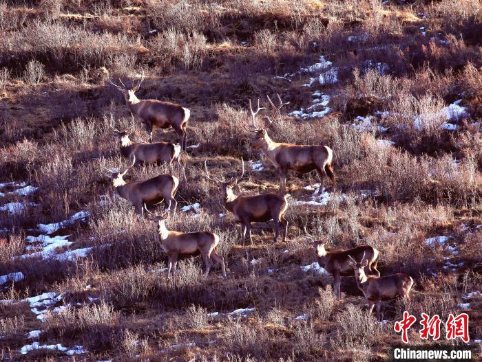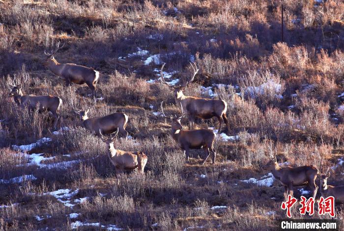 Au début de l'année 2024, alors qu'un photographe prenait des photos dans la région de Qinghai du parc national des monts Qilian, il a accidentellement capturé des images de cerfs élaphes, un animal protégé national de deuxième niveau en Chine, marchant dans les montagnes à la recherche de nourriture. Les cerfs élaphes pris en photo, tant?t s'arrêtant pour regarder au loin, tant?t baissant la tête pour se nourrir, dégagent un aura adorable.