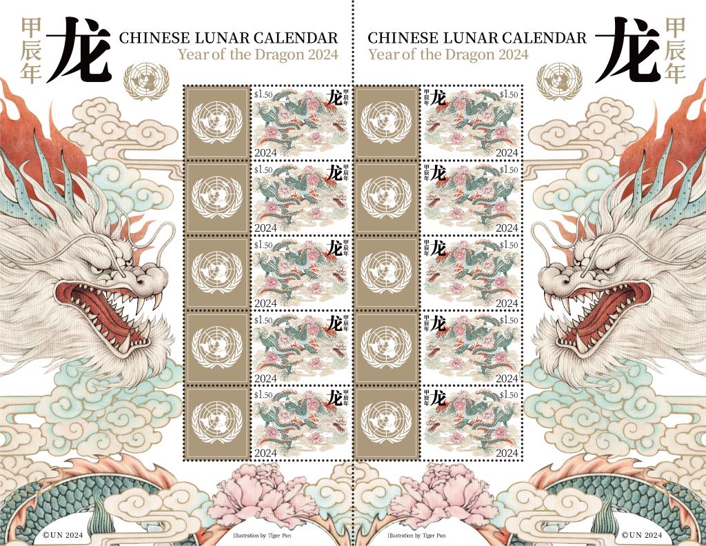 Cette planche de timbres, qui sera émise vendredi selon le programme de l'APNU, comportera 10 timbres d'une valeur nominale de 1,50 dollar américain chacun, représentant un dragon volant dans les nuages, car l'année 2024 sera l'Année du Dragon dans le calendrier lunaire.