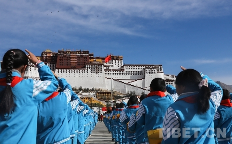 Le Xizang célèbre le 65e anniversaire de la réforme démocratique et de l'émancipation d'un million de serfs au Xizang avec une cérémonie de lever du drapeau à Lhassa