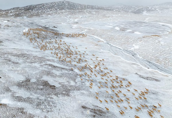 • Chine : migration des antilopes tibétaines enceintes au Xizang